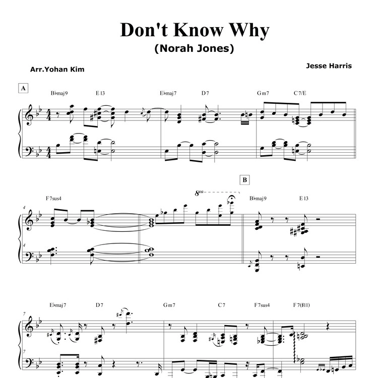 【楽譜概要】Don't Know Why - PDFファイル / A4 /7ページ