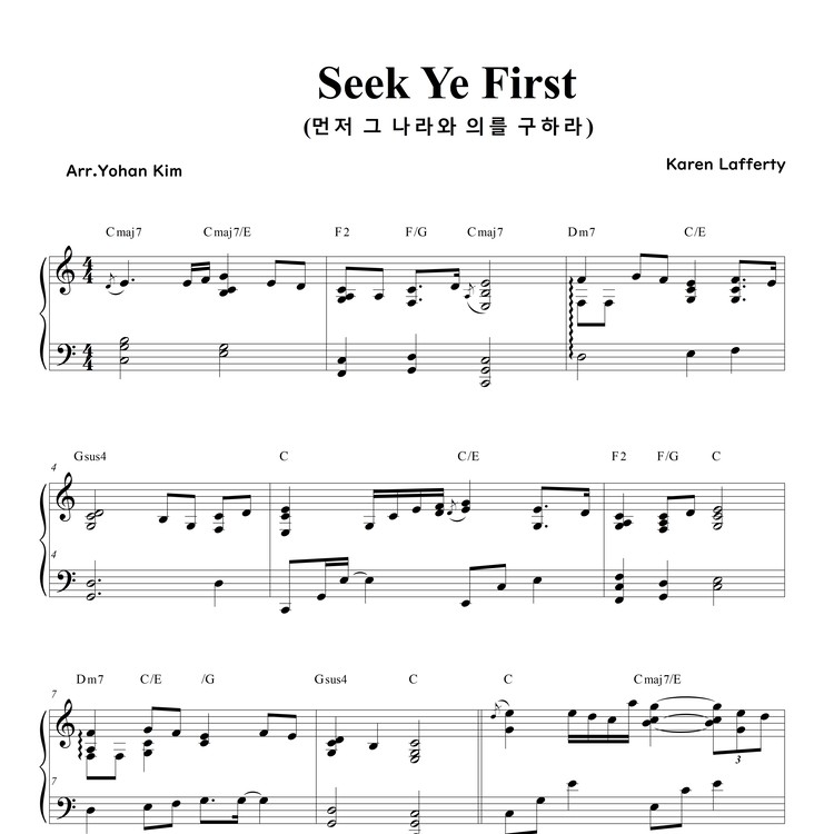 【楽譜概要】 Seek Ye First (ピアノソロ楽譜) PDFファイル / A4 / 4ページ
