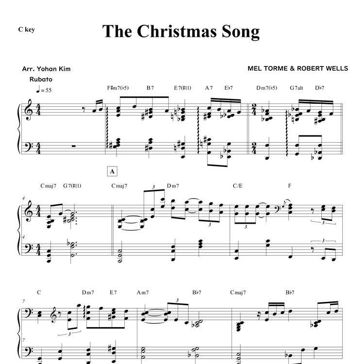 【楽譜概要】 The Christmas Song - C key(ピアノソロ楽- C Key ) PDFファイル / A4 / 5ページ