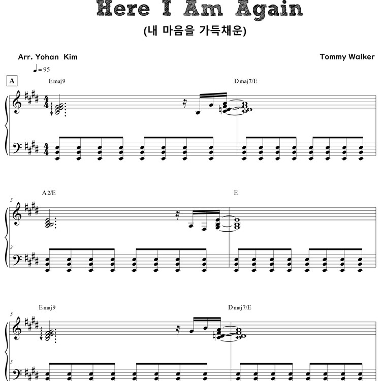 【楽譜概要】 Here I Am Again ジャズアレンジ (ピアノソロ楽譜) PDFファイル / A4 / 11ページ